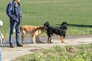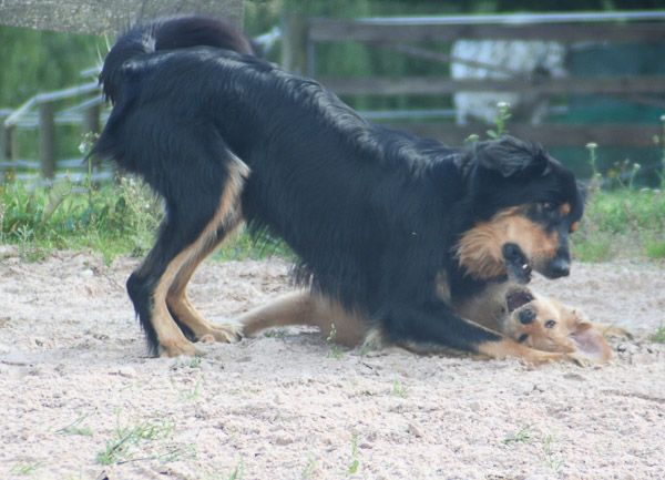 Tja, nach 5 Stunden im Auto auf Frauchen warten, darf man auch ein bisschen rüpeln.