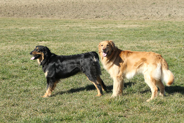 Die Wartezeit vertreiben wir uns auf dem Hundeplatz