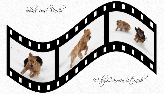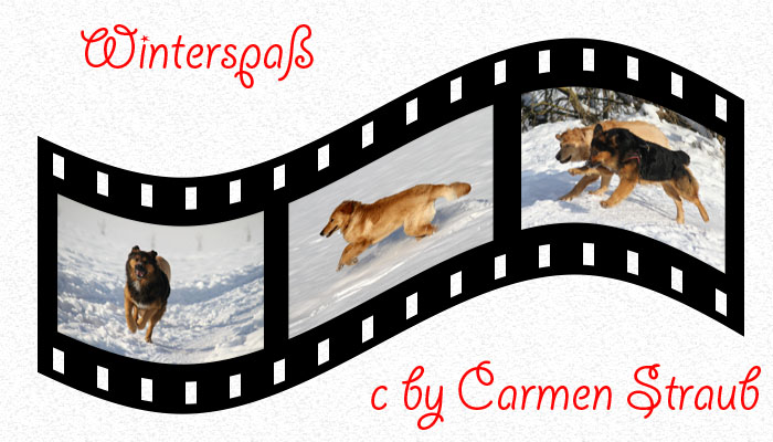 Der erste Schnee des Jahres ist gefallen. Wir beide haben unsere helle Freude an diesem weißen Zeug. Man kann sich toll drinnen wälzen und fressen kann man das auch noch. Mehr davon ... nur den doofen Wind brauchen wir nicht.