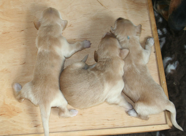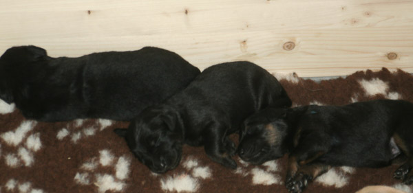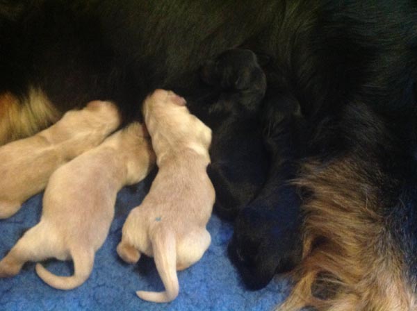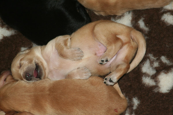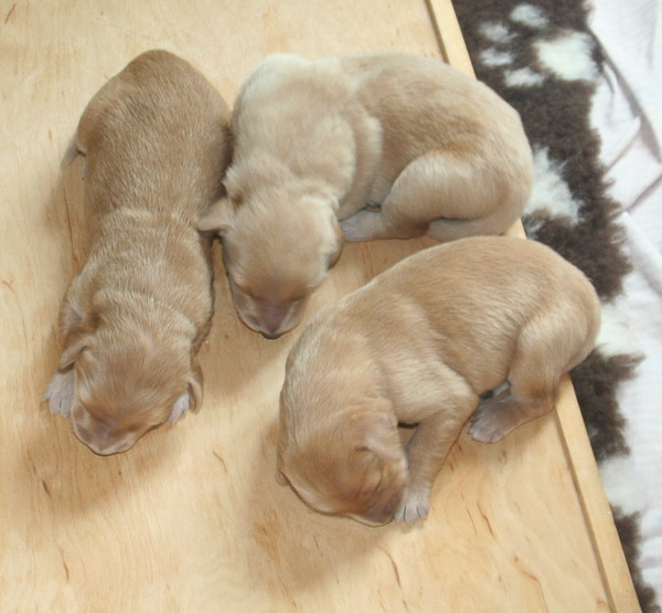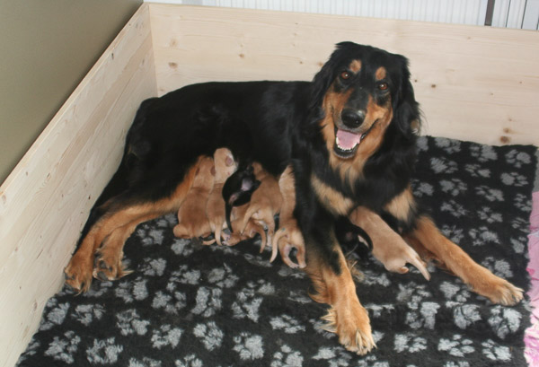 9 putzmuntere Welpen sind nun der ganze Stolz von Mama Cilli und der Papa hat, mit dem doch vorhandenen Blondgen der Mama, gleich für 6 blonde Welpen gesorgt.