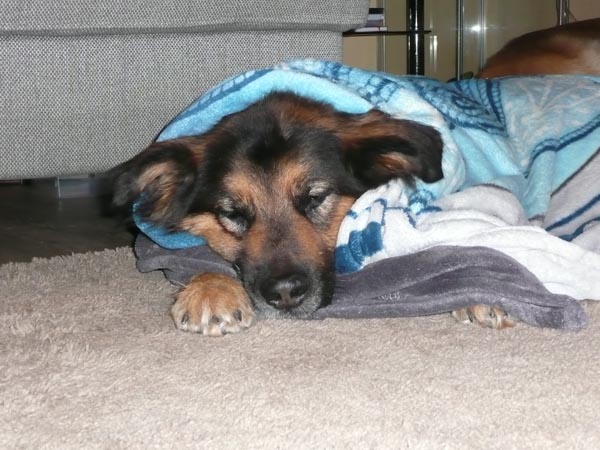 Nach der Fährtenarbeit muss man auch mal so richtig entspannen - war ja auch anstrengend.