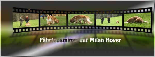 Frauchen kam letztes Jahr auf die Idee uns bei Milan Hoyer zum Fährtenseminar anzumelden. Weiterbildung kann ja nicht schaden und an Empfehlungen für dieses Seminar fehlt es nicht. Also auf zum Edberghof und Nase auf den Boden. Frauchen hat viel dazugelernt und ich finde diese Art der Ausbildung super. So viel Futter habe ich auf der Fährte noch nie bekommen. Schon alleine aus diesem Grund bitte ich um Wiederholung und nun arbeiten wir weiter.